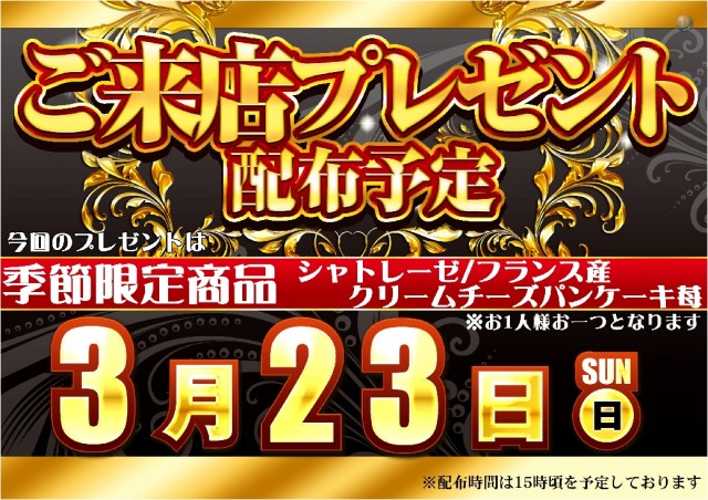 本日3/23(日) ご来店プレゼント配布(予定)