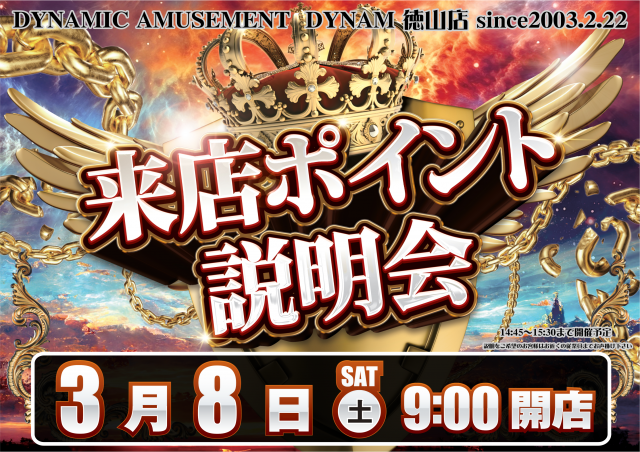 明日3/8(土) 来店ポイント説明会(予定)
