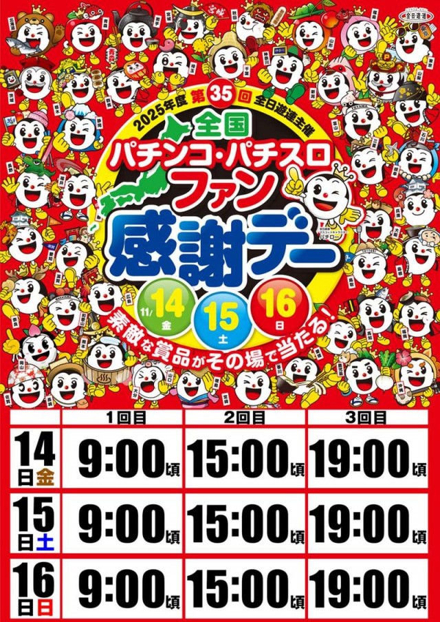 本日11/16 全国ファン感謝デー! 全館朝9時オープン!!