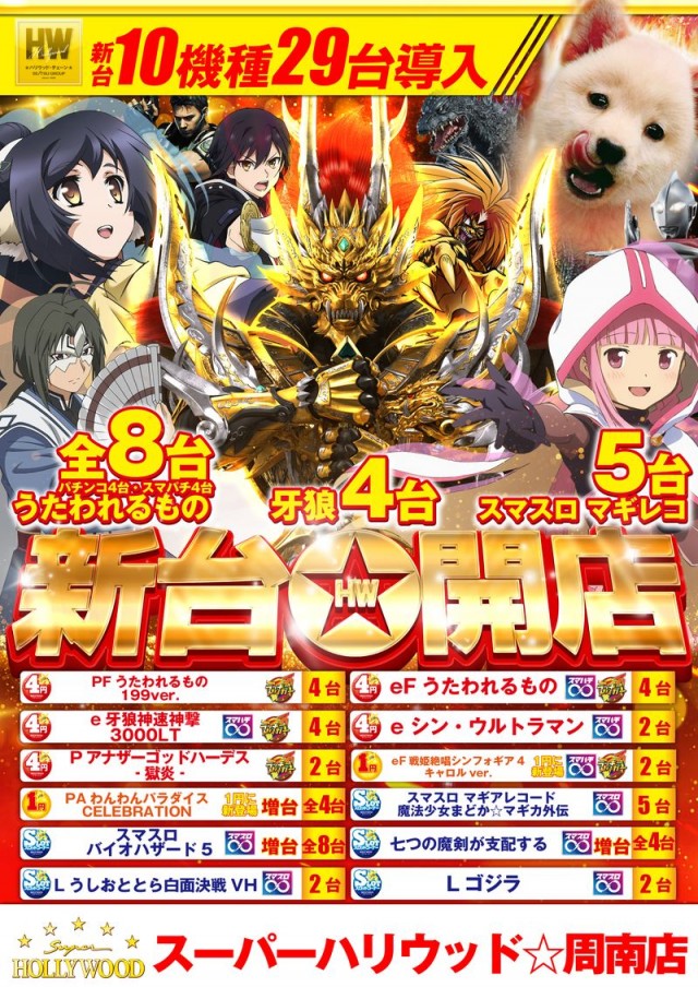 本日4/9(水)店休日 明後日4/10(木)新台入替予定