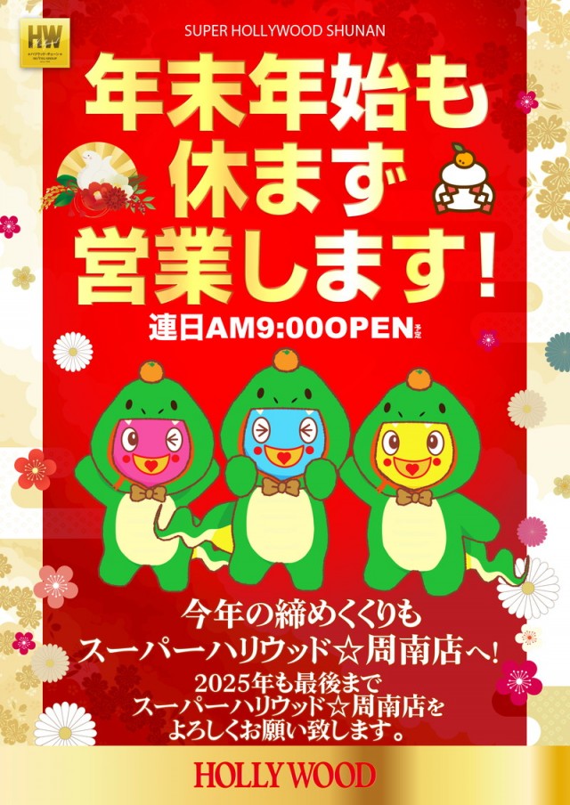 本日12/28(日)スーパーハリウッド☆周南店 朝9時開店!