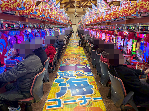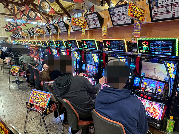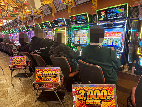 6.25円パチスロの支持も厚く、様々な機種で楽しそうにレバーを叩くプレイヤーが見られた。