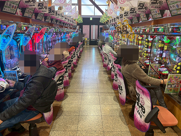 店内には老若男女を問わずプレイヤーが集合。パチンコ・パチスロの各シマから活気が感じられた。