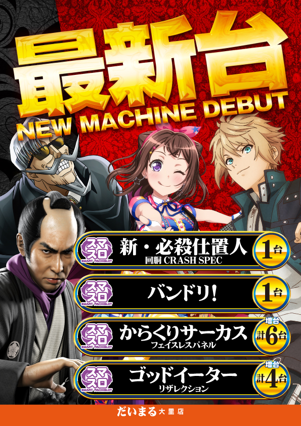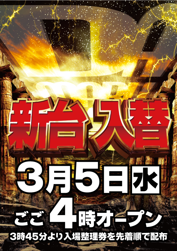 本日3月5日(水)★新台入替★ごご4時オープン!(予定)
