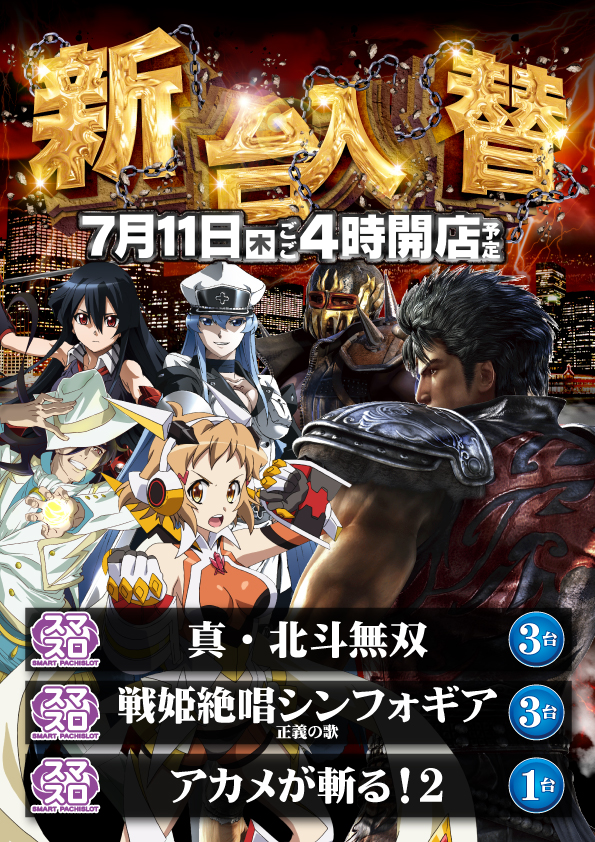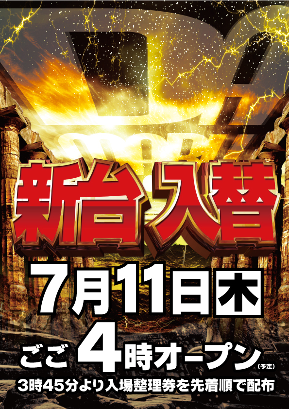 本日7月11日(木)★新台入替★ごご4時オープン!(予定)
