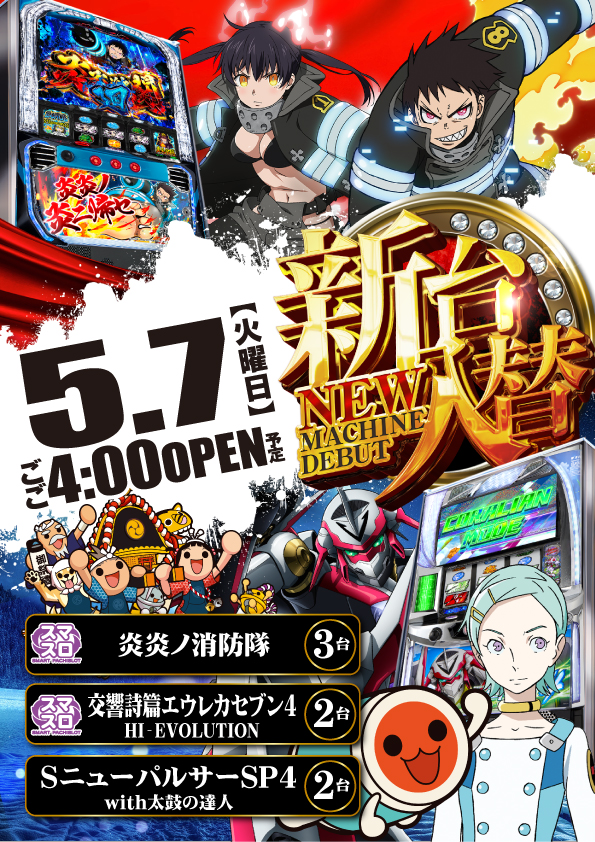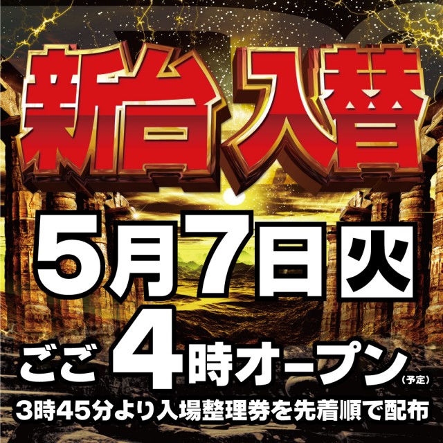 本日5月7日(火)★新台入替★ごご4時オープン!(予定)