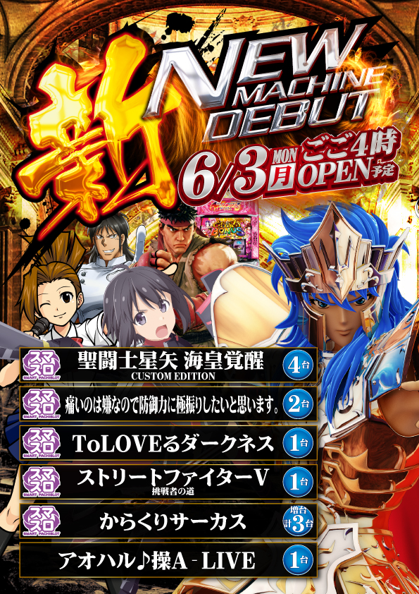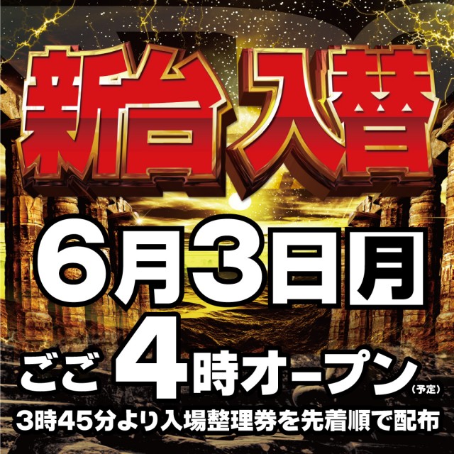 本日6月3日(月)★新台入替★ごご4時オープン!(予定)