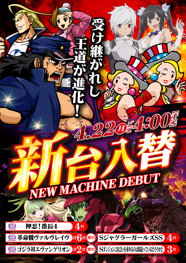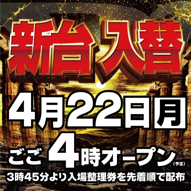 本日4月22日(月)★新台入替★ごご4時オープン!(予定)
