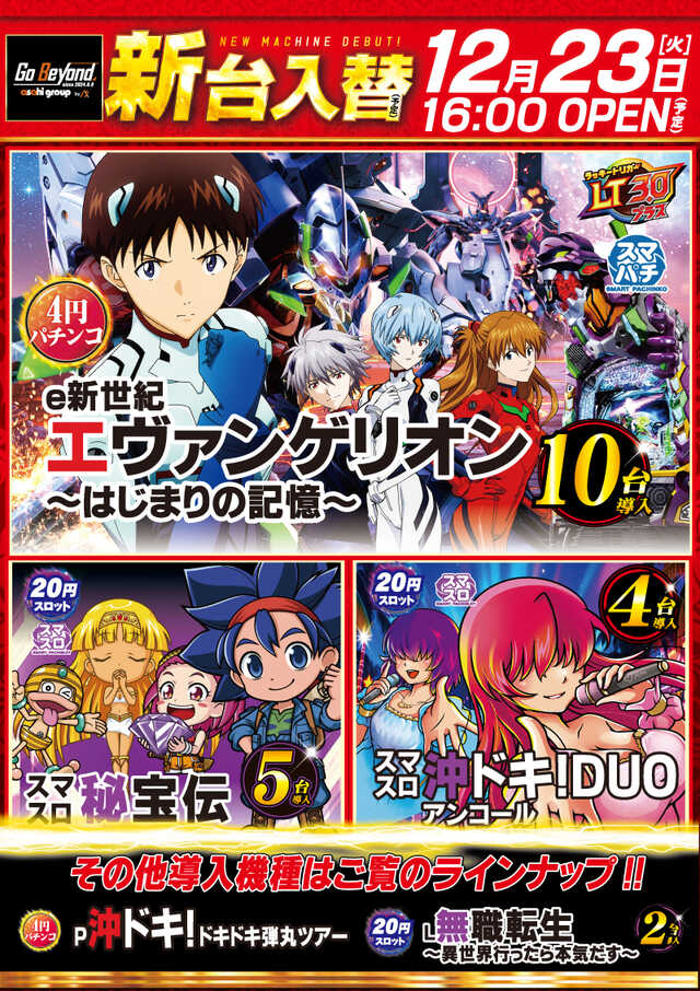明日12/23(火)★新台入替16時開店予定‼お待ちしてます