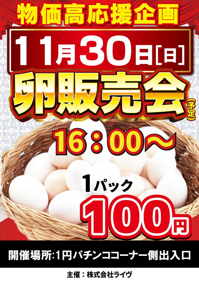 ★明日30日卵販売会16:00~!★通常営業10時!★