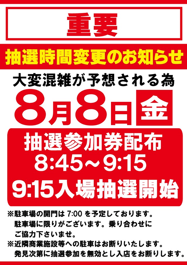 8/5(火)★本日新台入替‼15:45より入場抽選開始‼