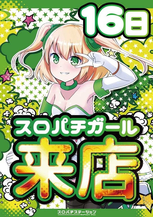 ★本日16日(祝)スロパチガール来店!★通常営業10時‼