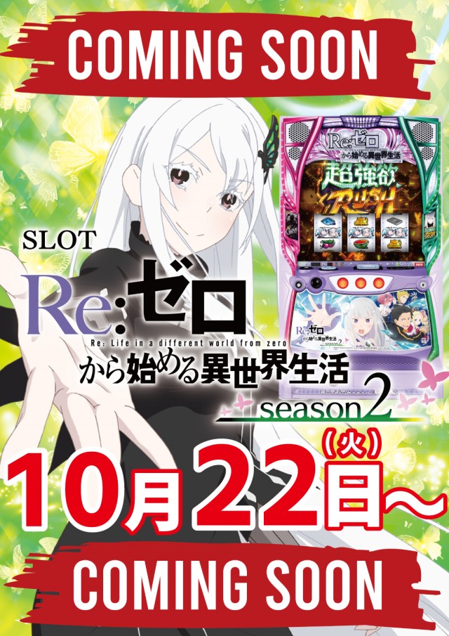 ★リニューアル月間★本日10/22より「Lリゼロ」稼働開始★
