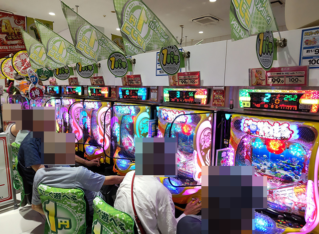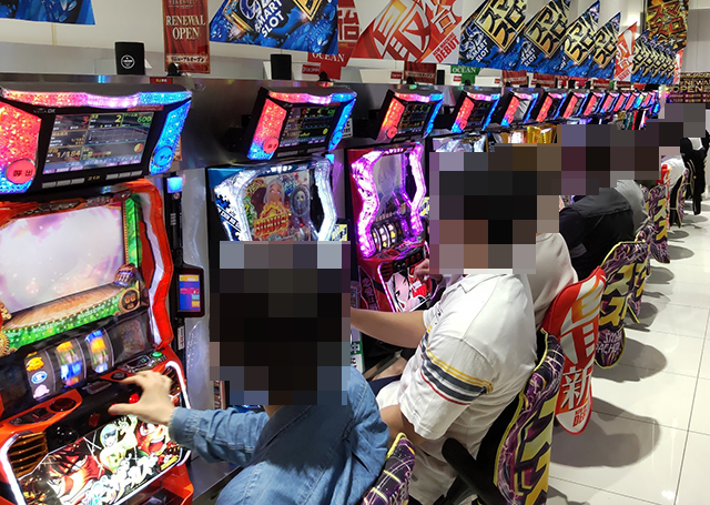 「スマスロ北斗の拳」や「押忍!番長4」など、取材時は複数の機種が満席。