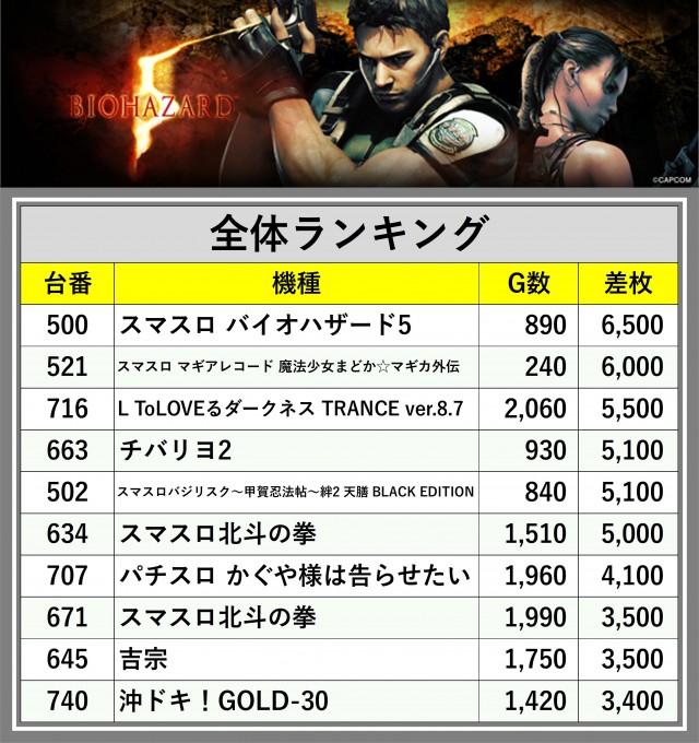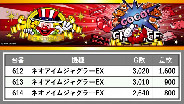 厳選された取材対象機種をはじめ、その他スロット全体から好記録が飛び出した!プレイヤーが楽しんだ1日を下記データにて振り返ってみて欲しい。