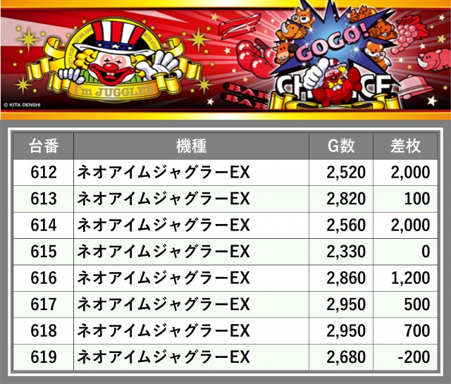 厳選された取材対象機種をはじめ、その他スロット全体から好記録が飛び出した!プレイヤーが楽しんだ1日を下記データにて振り返ってみて欲しい。