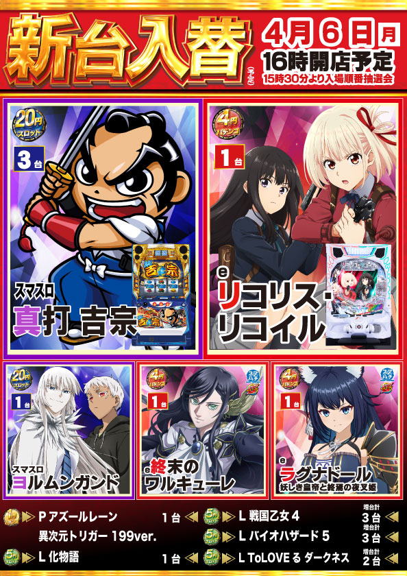 ★本日新台入替16時開店予定★入場抽選会は15時30分開始★