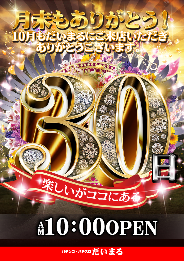 ☆本日10月30日(土)通常営業あさ10時オープン予定です☆