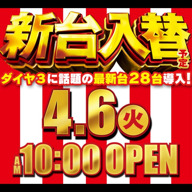 本日★新台入替×配置変更★あさ10時OPEN!!