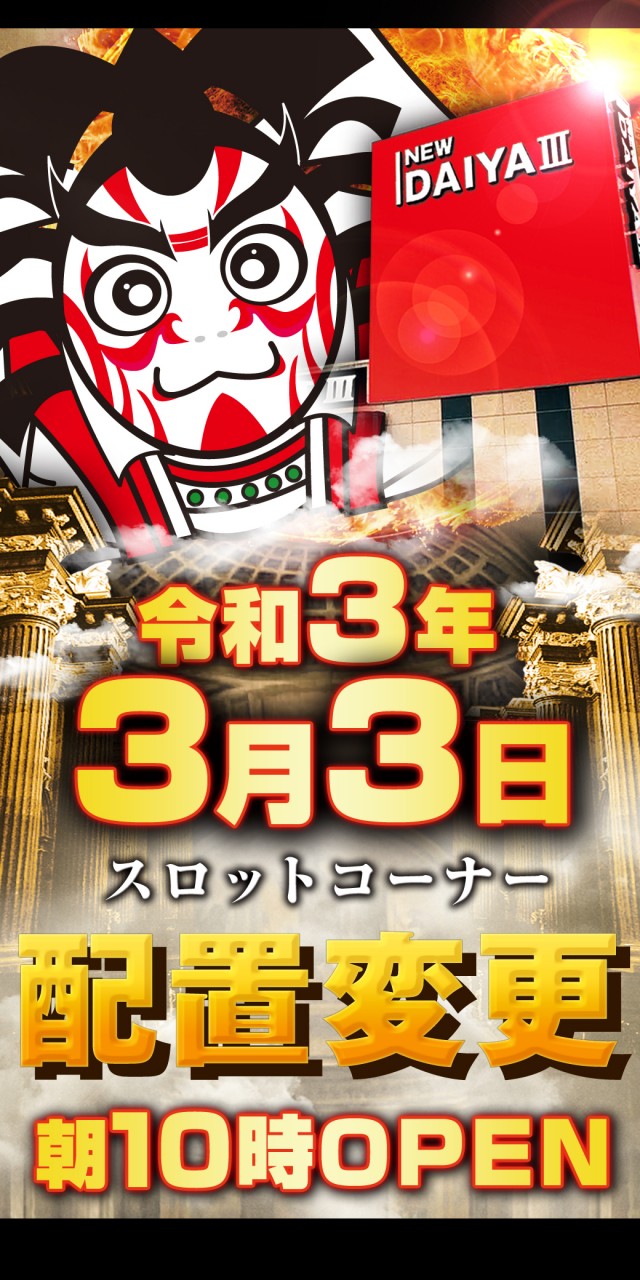 配置変更&新台解禁☆朝10時OPEN!PアリアS絶対衝激Ⅲ☆