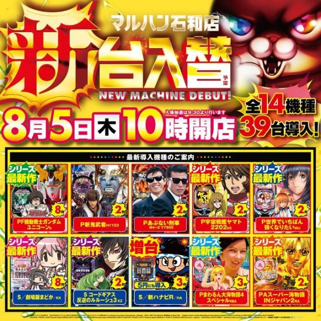 11月11日(木)新台入替×4円パチンコ増台!10時開店!