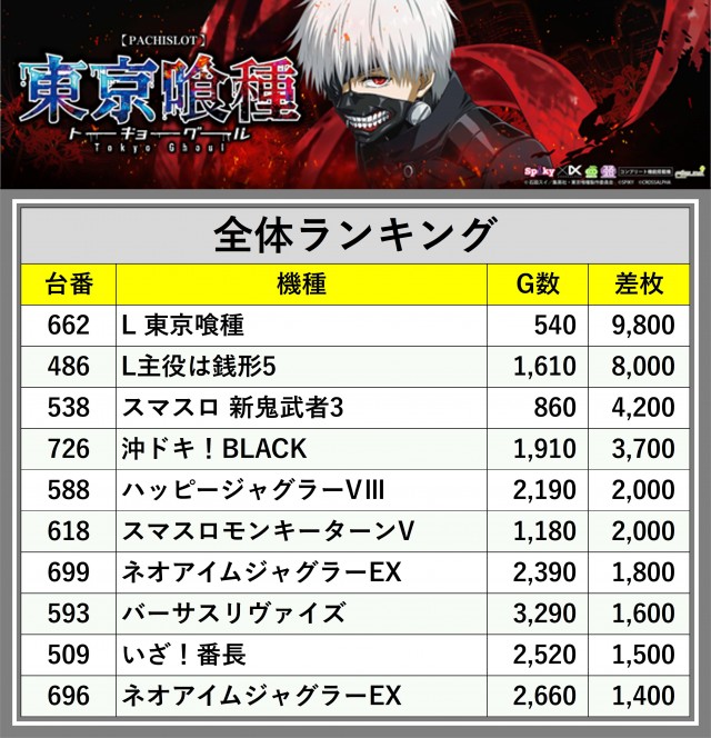 厳選された取材対象機種をはじめ、その他スロット全体から好記録が飛び出した!プレイヤーが楽しんだ1日を下記データにて振り返ってみて欲しい。