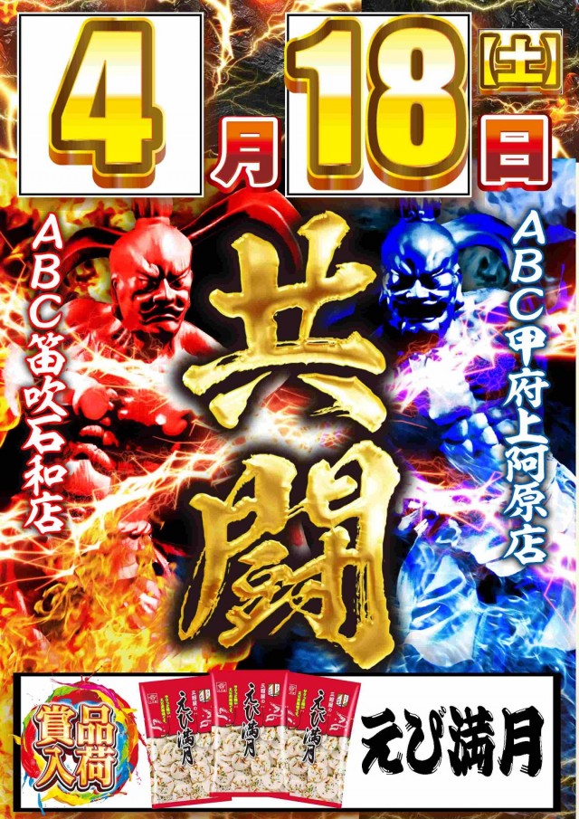 本日4/18 【共闘】笛吹石和・上阿原2店合同賞品入荷!!
