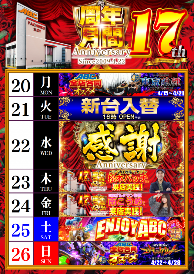 松本バッチさん来店実践予定!★全店合同エヴァ17おすすめ★