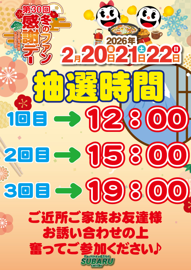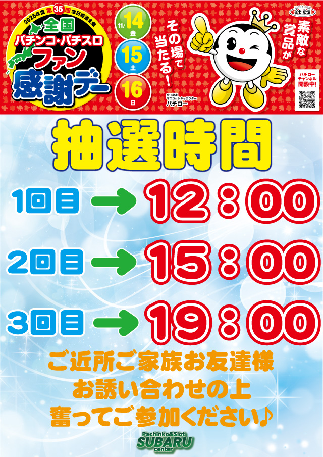 ワクワク抽選会は1日3回!!
