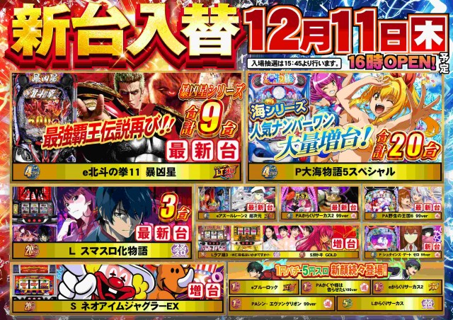 本日、新台入替16時OPEN!!是非、ご来店下さい!