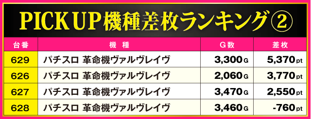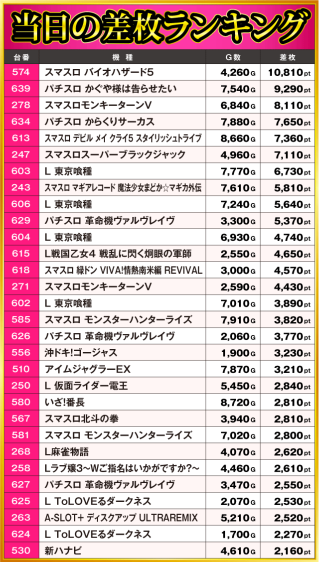 当日の差枚ランキング
