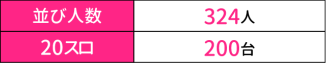 今回は平日にも関わらず、20スロの設置台数を上回る324人のプレイヤーが大集結!! はたして、店内ではどのような盛り上がりを見せてくれたのか? 早速、詳細データとともに徹底レポートしていこう。