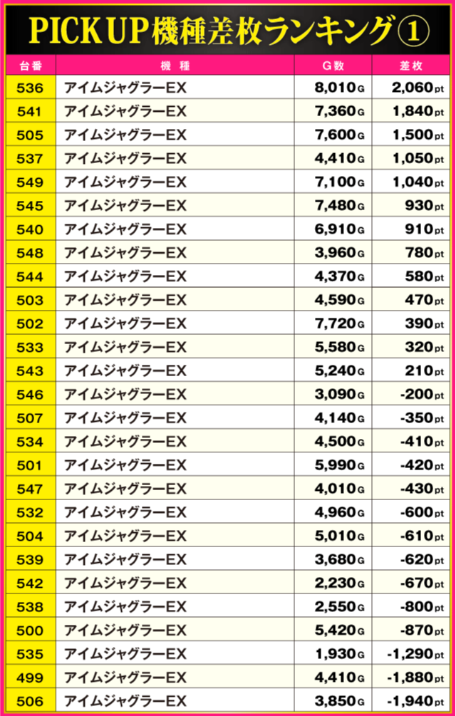 ※差枚pt順に掲載しています。