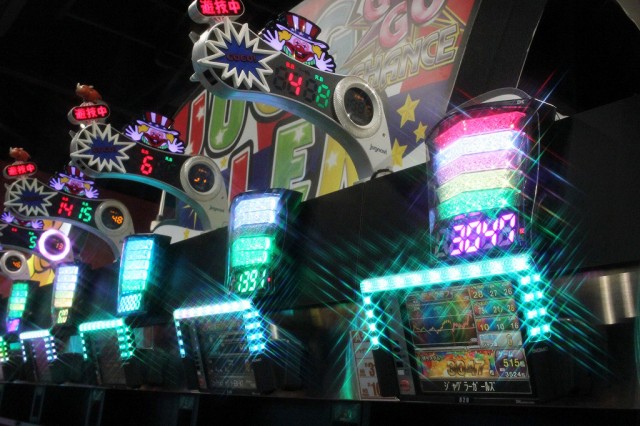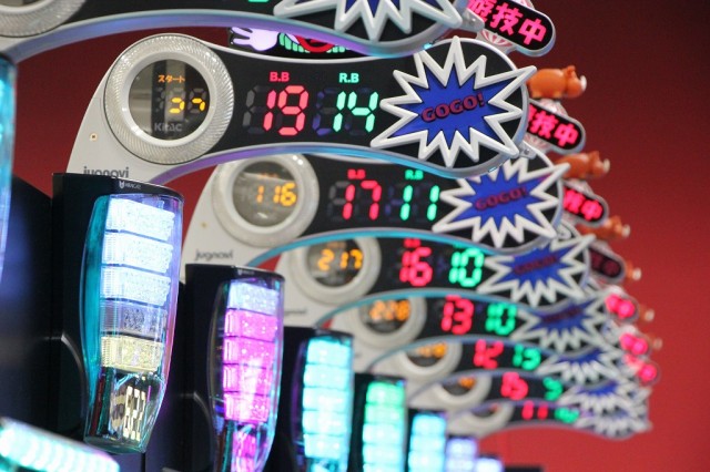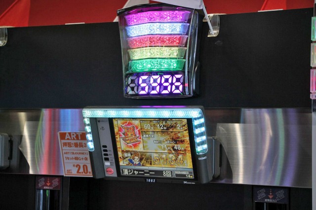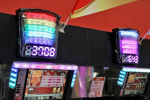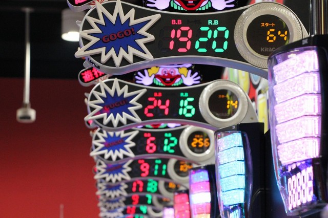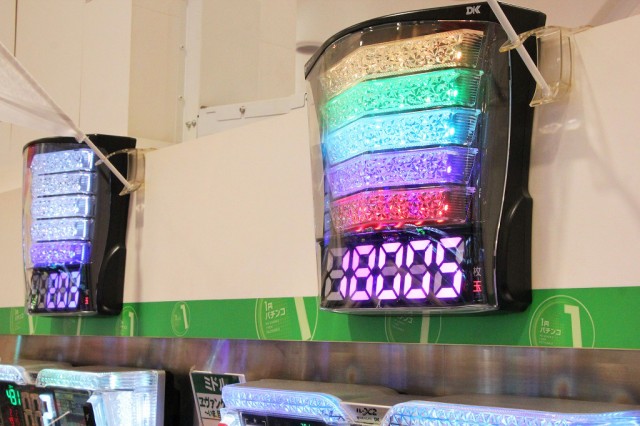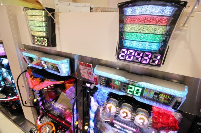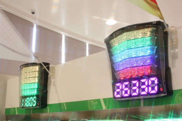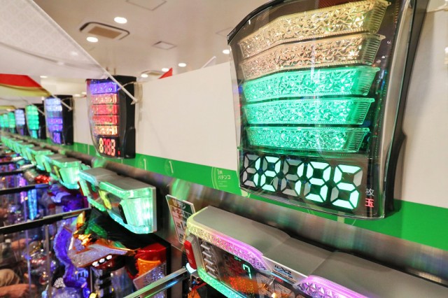 扉をくぐって目にするのは、パチンコフロアで輝きを放つ大当り群&カラフルな数字たち!