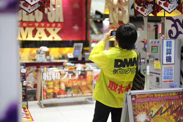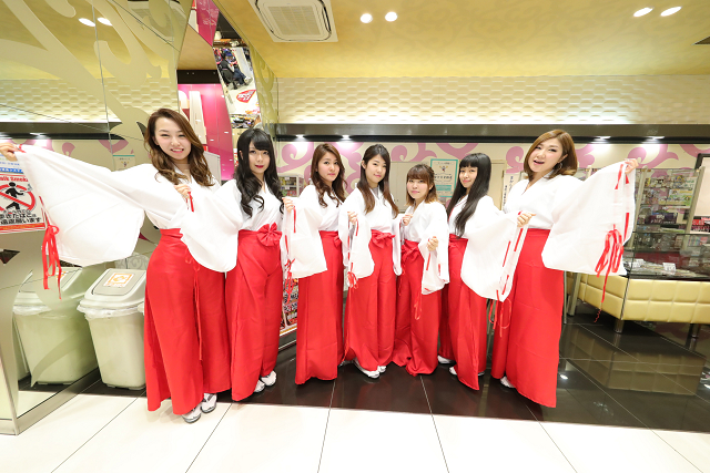 下心を抑えて声をかけてみると、なんでもこの日は大阪日本橋でんでんタウン界隈の「日本一おもしろいコスプレイヤー」が、巫女さんに扮して連れ打ち実戦するのだそう。