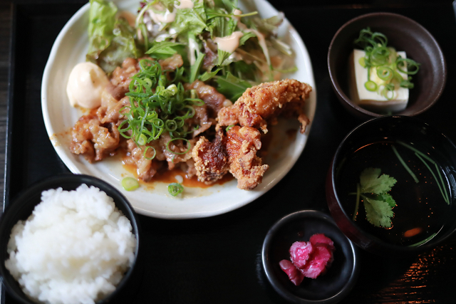 この日は日替わり定食をチョイス。焼肉&カラアゲ定食ボリューム満点!
