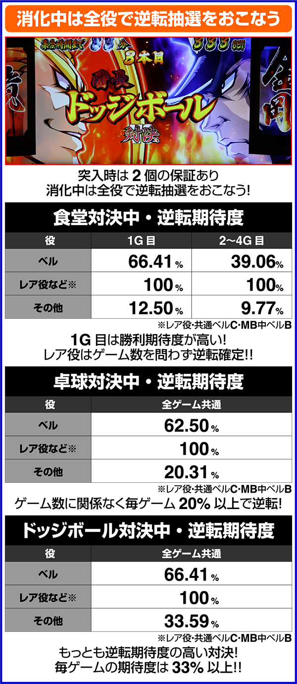 大当りのチャンスが2回あり、初回が60%で、2回目が50%で大当り。