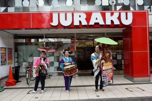 また、外に出ると「寿楽」の開店を告げる演奏隊が繰り出しコミカルな音楽を奏でる。