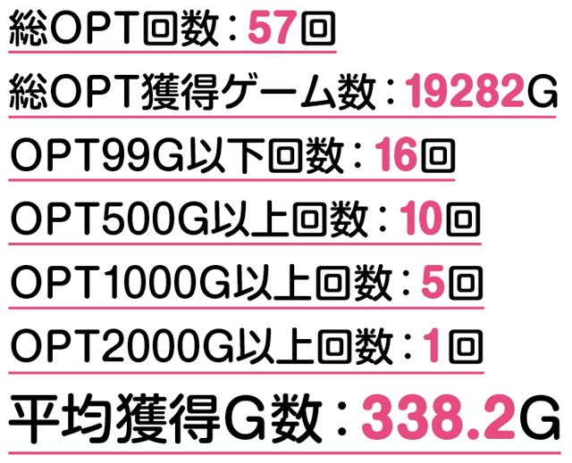 ちなみにシンブレ3のOPTの平均獲得G数は約100G。