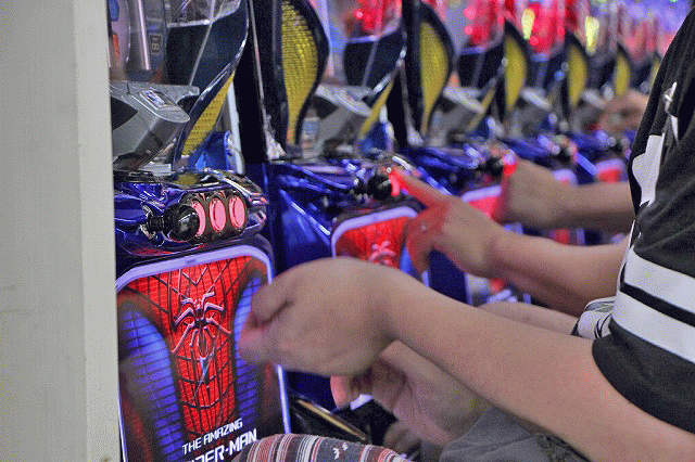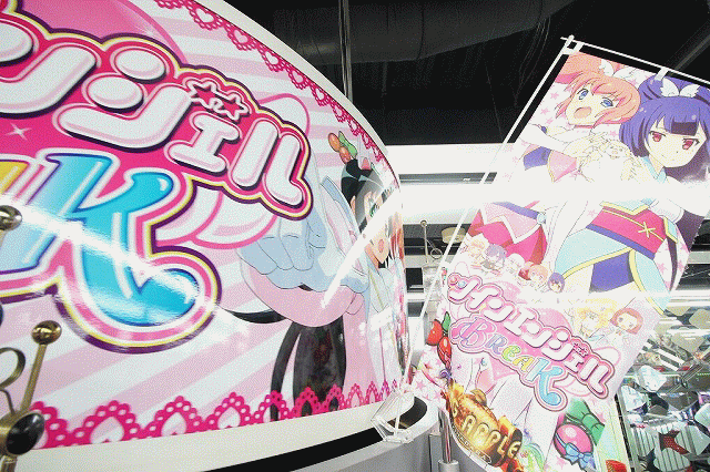 フロア毎、好稼働の人気・定番機種。そこに混じり、真新しく目立つデザインのパネルもあちらこちらに。