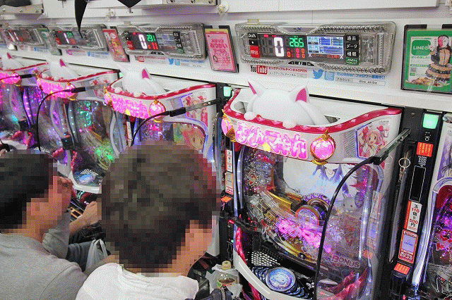 取材班も続いて店内へと潜入すれば、正面に広がるのは既に満台御礼となった『ぱちんこ・まどマギ』ゾーン。