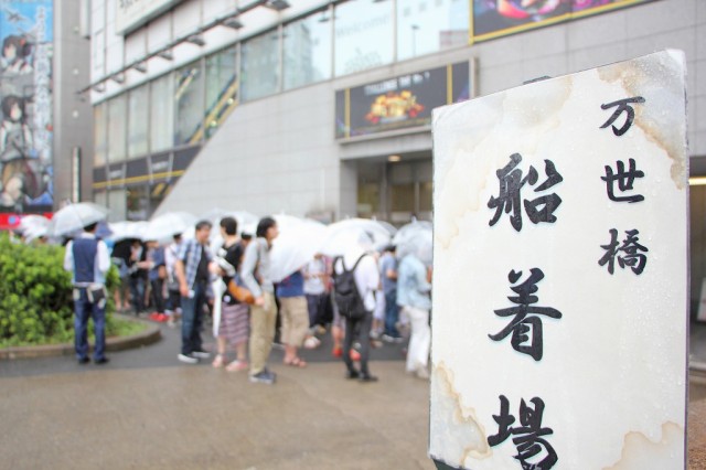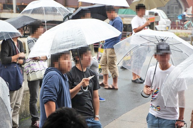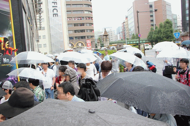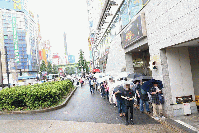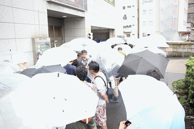 | 雨ニモマケズ、延び続ける長蛇の列。 | |