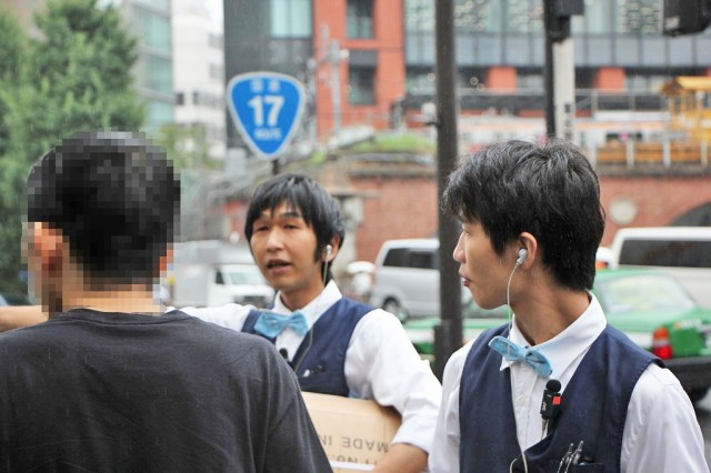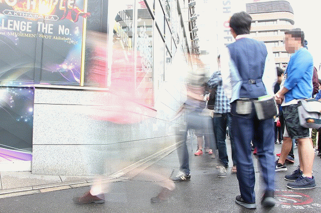 | 再整列時のひと時。店舗前の活気はうなぎのぼり!アキバの往来にスタッフの懸命な整列の掛け声が響きわたる。 | |
