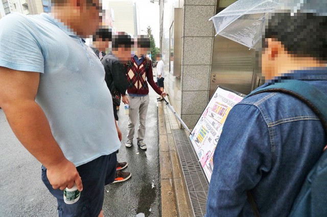 | 続々と抽選を受けるファン。あちらこちらで期待に満ちた声が飛び交う。大量の新台導入なだけに、ファンは目標機種の場所を欠かさずチェック! | ||