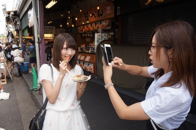 かおりっきぃ☆とかいぬまみくちゃんが築地で海産物を食べ歩き