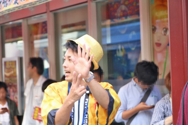 | 再整列をアテンドするスタッフたち。アメ横呼び込みの活気に負けない元気が溢れていた!! | |
