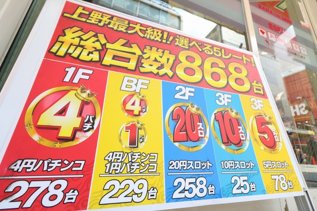 上野エリアでは3店舗。設置台数は最大級の規模を誇る。