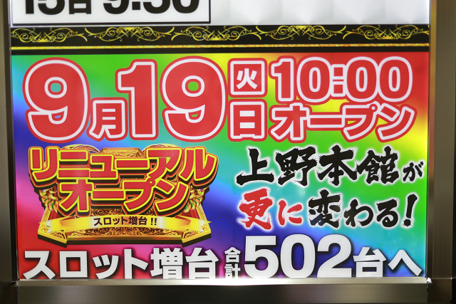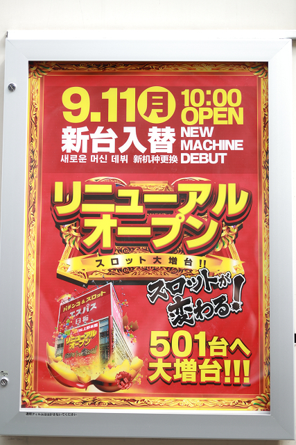 訪れた9月11日(月)は、エリアの礎を築いた旗艦店である本館パチスロフロアが、大幅リニューアルした初の稼働日となった。