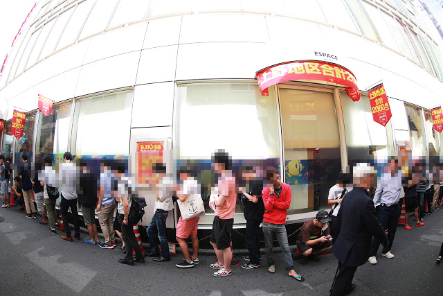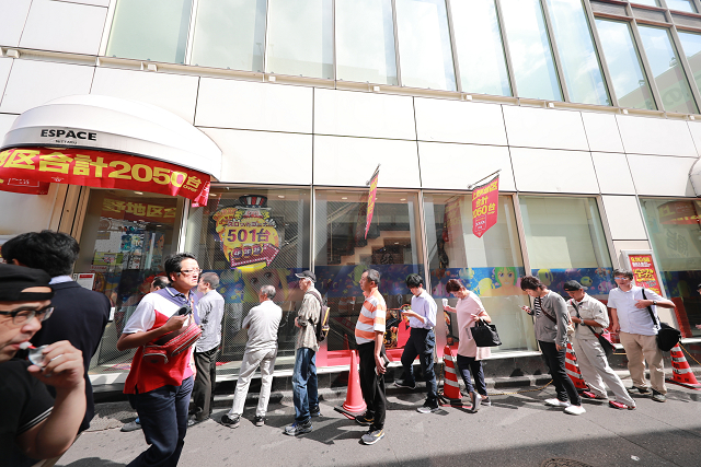 ファンより一足先に各フロアを見て回ったところで、外にはパチスロ抽選に勇んだ人垣が、すでに一重、二重、三重と出来上がる!