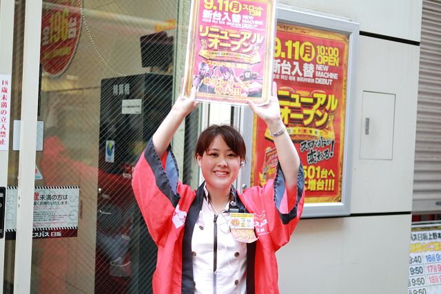まずはB1F、1Fのパチンコフロアが、通常の10時オープン。大幅リニューアルのパチスロフロアが、13時からの遊技スタートと2段構えとなった。